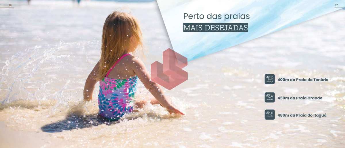 Localização privilegiada: apenas 400 metros da Praia do Tenório, 450 metros da Praia Grande e 480 metros da Praia do Itaguá
